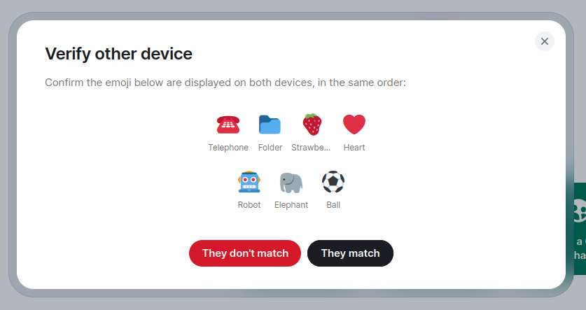 If neither of the devices are smartphones, you will only be presented with one option to verify by checking for matching emoji, as below: